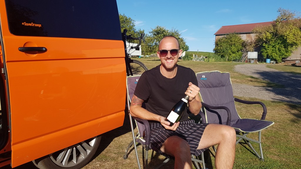 Not only could we park for the night, there were toilet and shower facilities. Winning! This came at a small price of 10 euros, or free if we bought some champagne. Obviously, we did the latter as we were in the champagne capital after all. We bought two bottles and it wasn’t long before we were soaking up in the sun with a glass (or three) of bubbly. It was the perfect final night of our holiday.